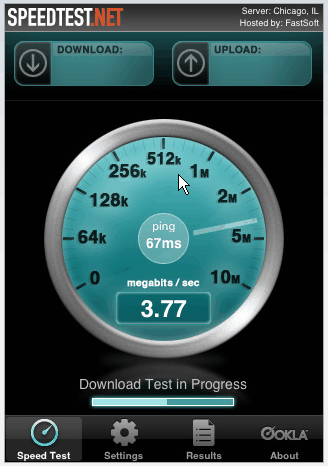 Разработана она, как это ни странно, тоже ребятами из компании Ookla и отличается от рассмотренного выше сервиса несколько урезанными техническими возможностями, ограничивающимися лишь тестированием скорости обмена данными с одним из восьми удаленных серверов на выбор.